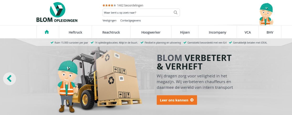 Samen met Team Nijhuis ontwikkelden wij in opdracht van Blom (Hengelo) het portaal zodanig dat dit 100% aansluit bij huisstijl en bijdraagt aan de realisatie van de voorgenomen internet strategie. Inmiddels is deze succesvol in gebruik! Neem een kijkje op www.blomopleidingen.nl