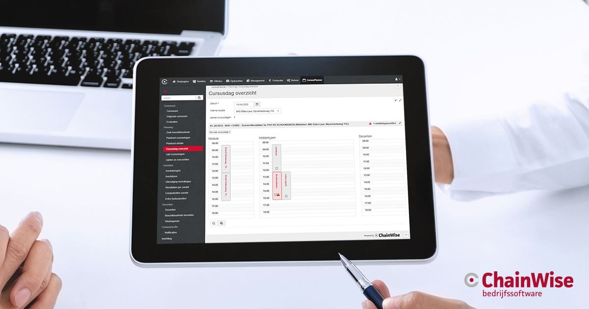 Er zijn enkele aanpassingen doorgevoerd waardoor het gebruik van tablets eenvoudiger wordt. Er is een toevoeging gerealiseerd om de geplande cursusdagen aan docenten te tonen met modules, middeltypes en middelen. De button ‘genereer deelnemerslijst’ wordt niet meer in het docentportaal getoond indien hiervoor geen sjabloon is ingericht.
