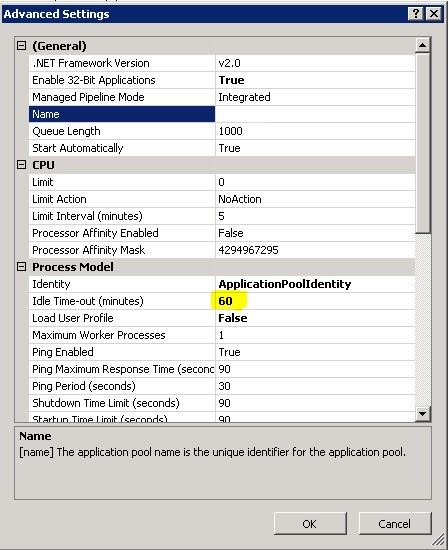 LET OP! Wanneer de application pool aangepast wordt, dan zullen alle actieve sessies verloren gaan.