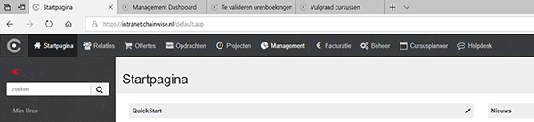 In het getoonde voorbeeld zijn bij het opstarten van de browser 4 tabbladen tegelijk opgestart: